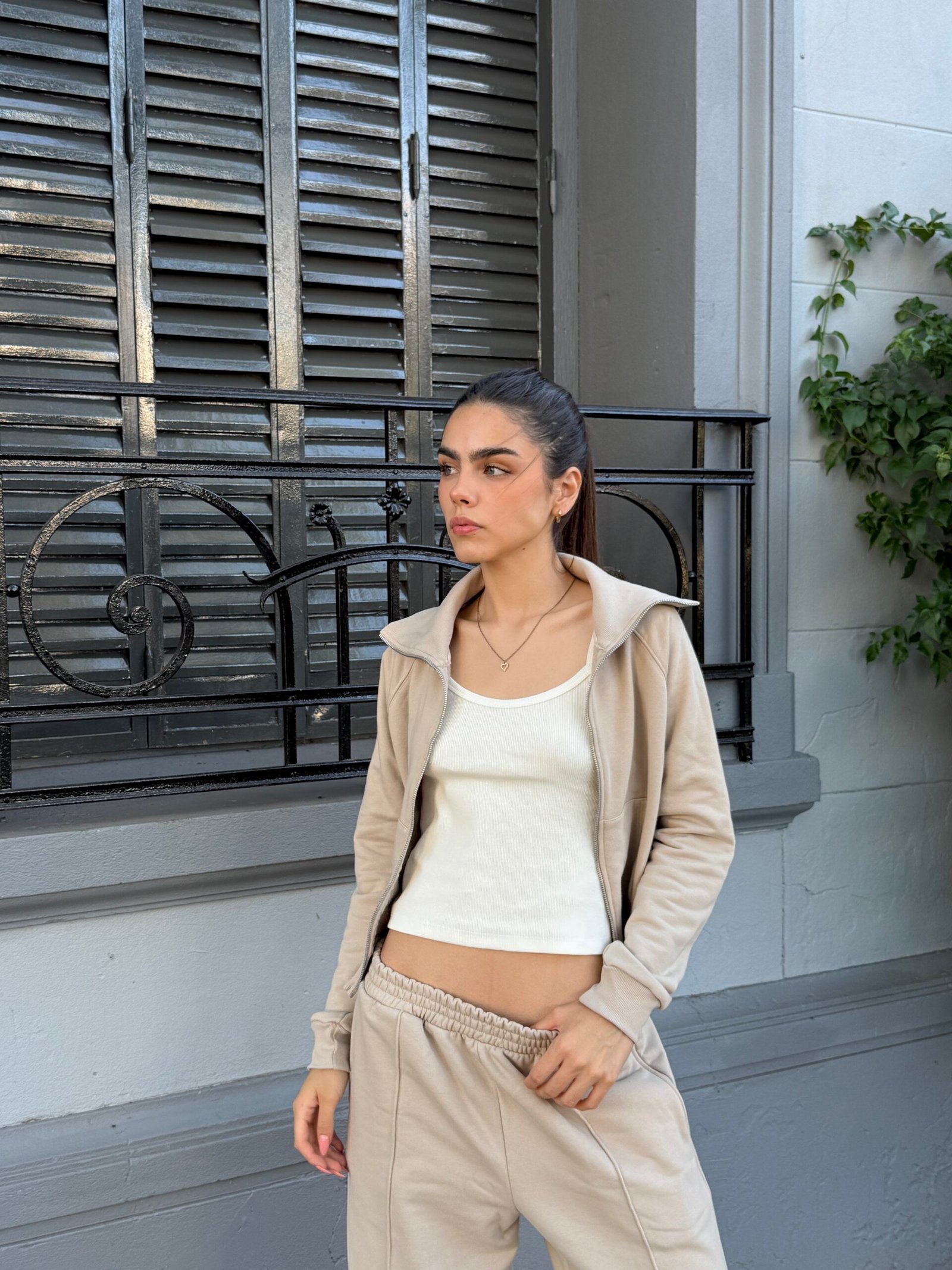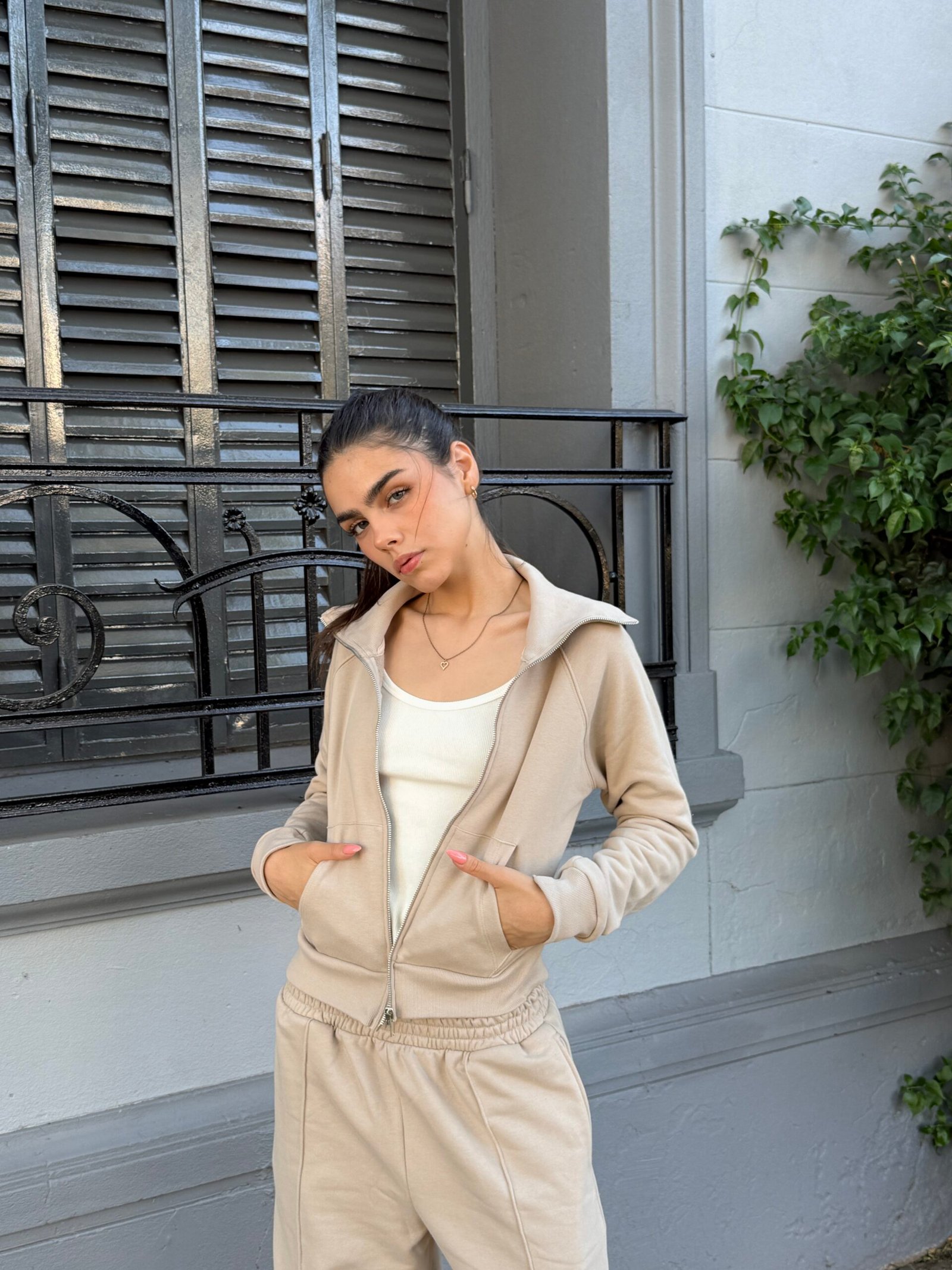 Camperita de rústico algodón con detalle de complemento de rib, con cierre.
