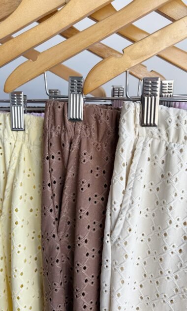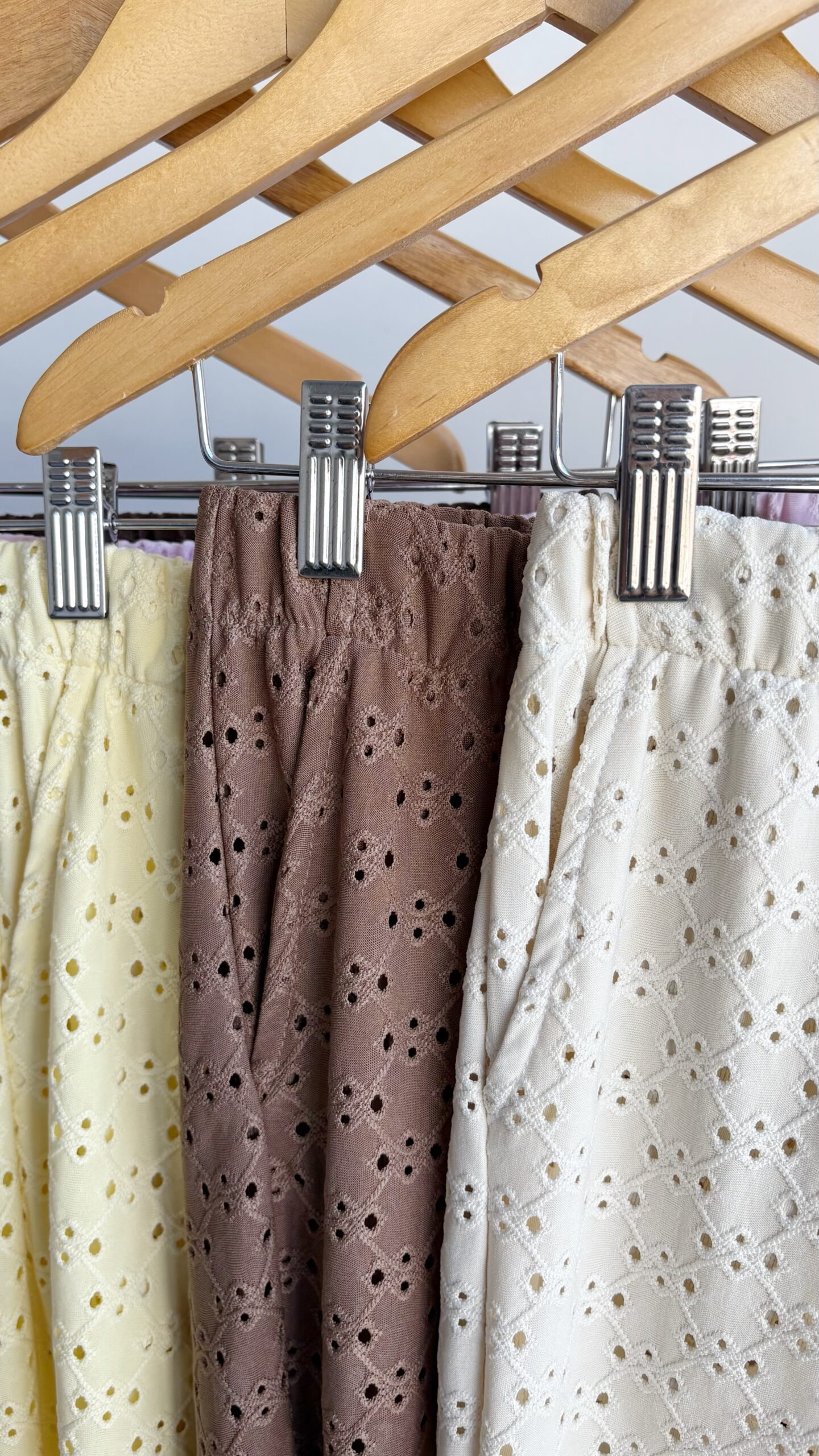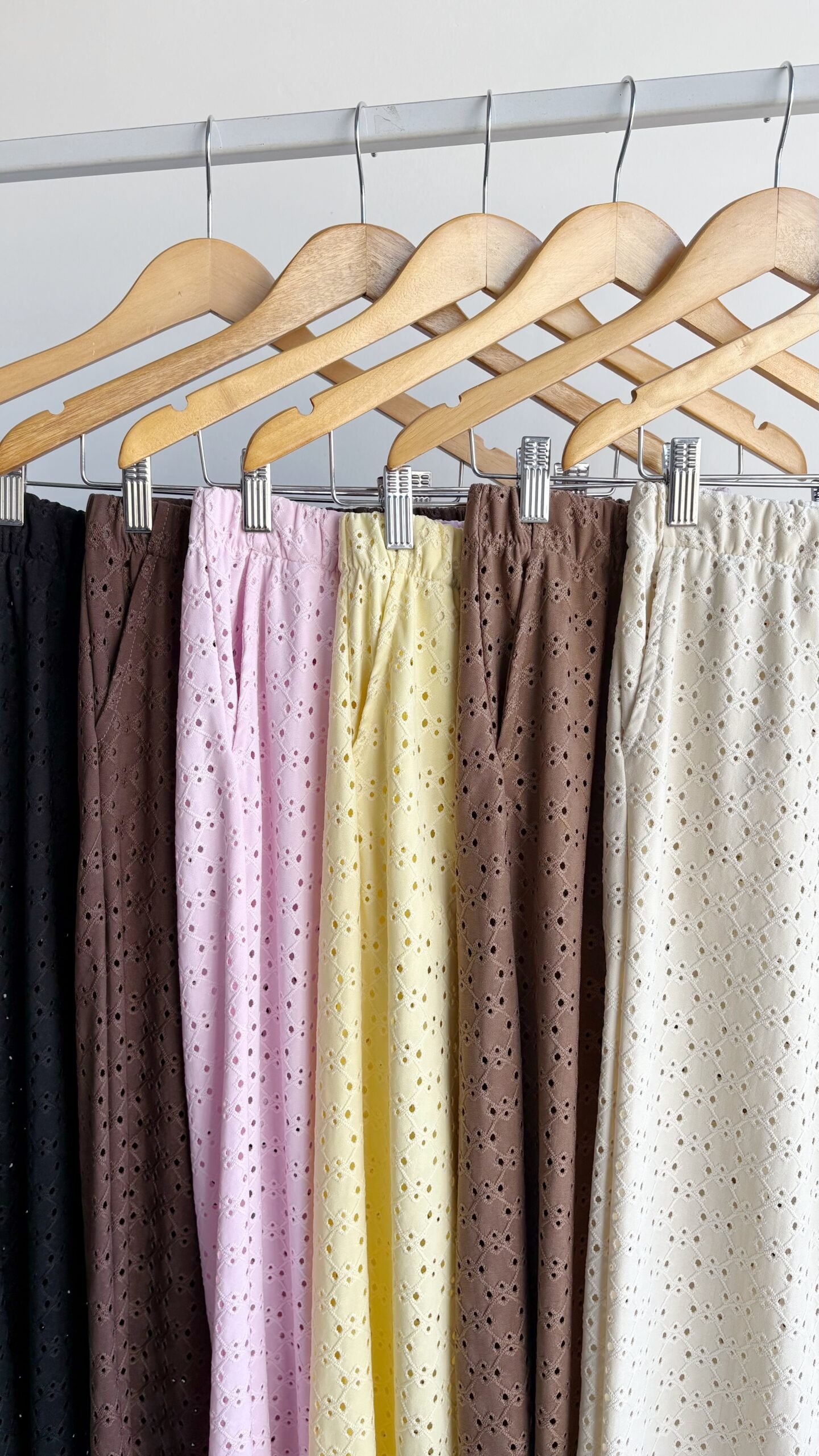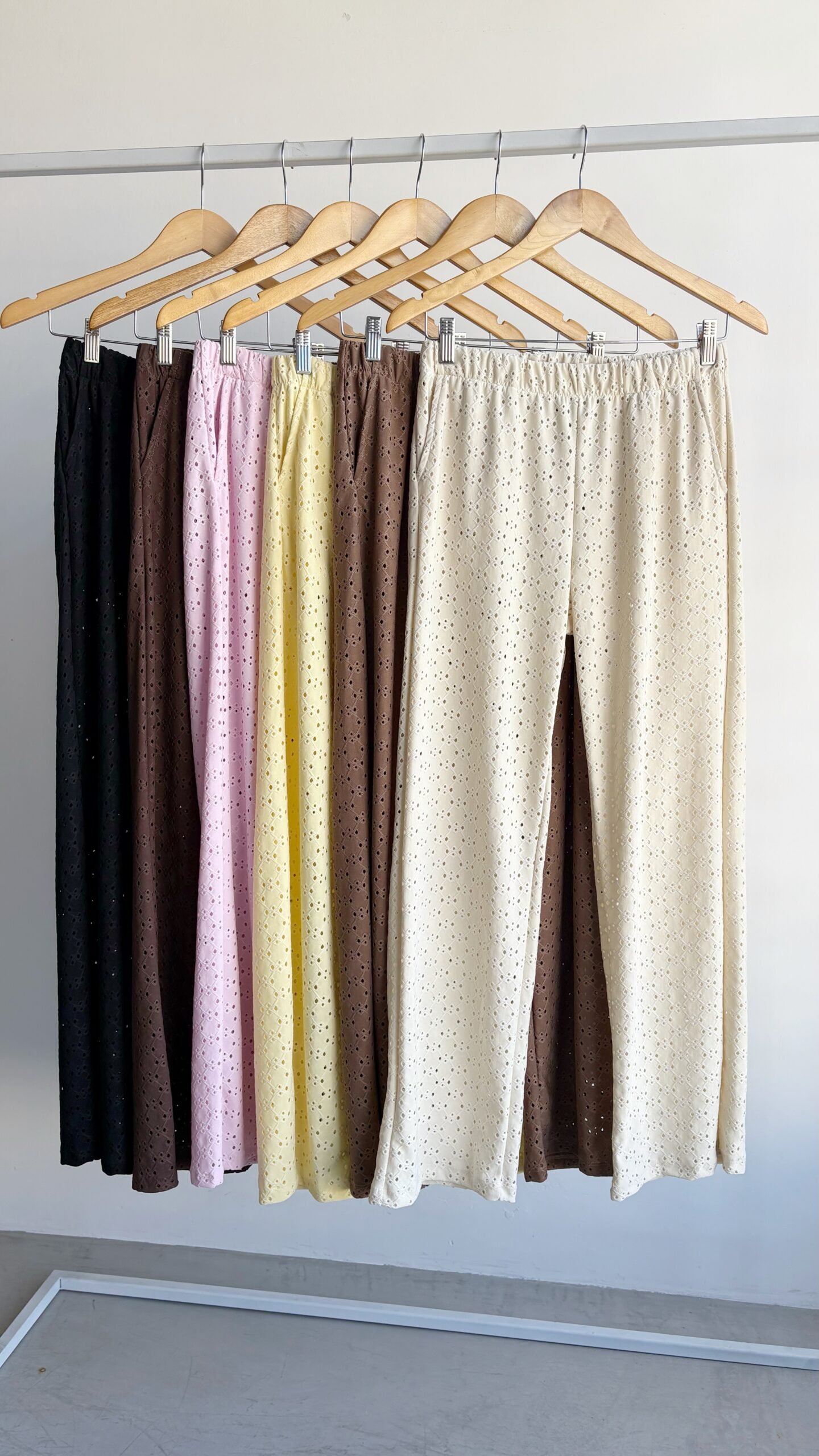 Pantalon recto con bolsillos laterales y elastico en cintura de broderie (tela con buena elasticidad)