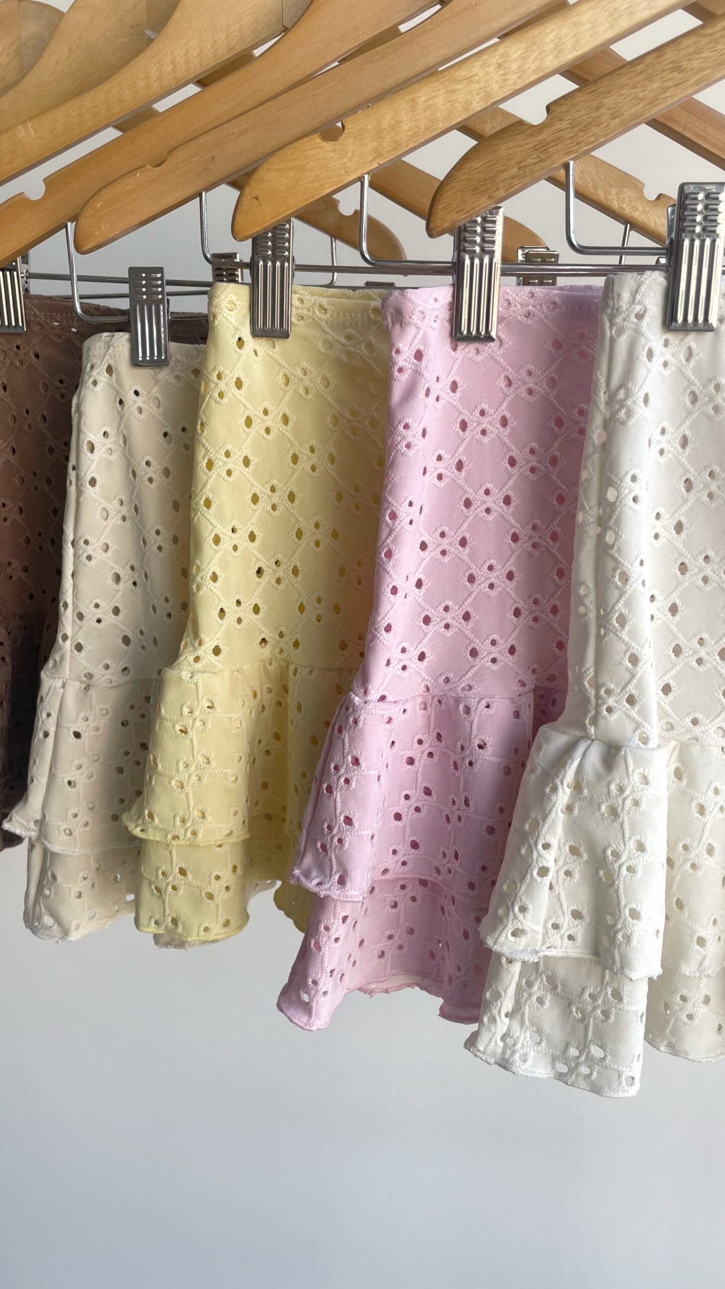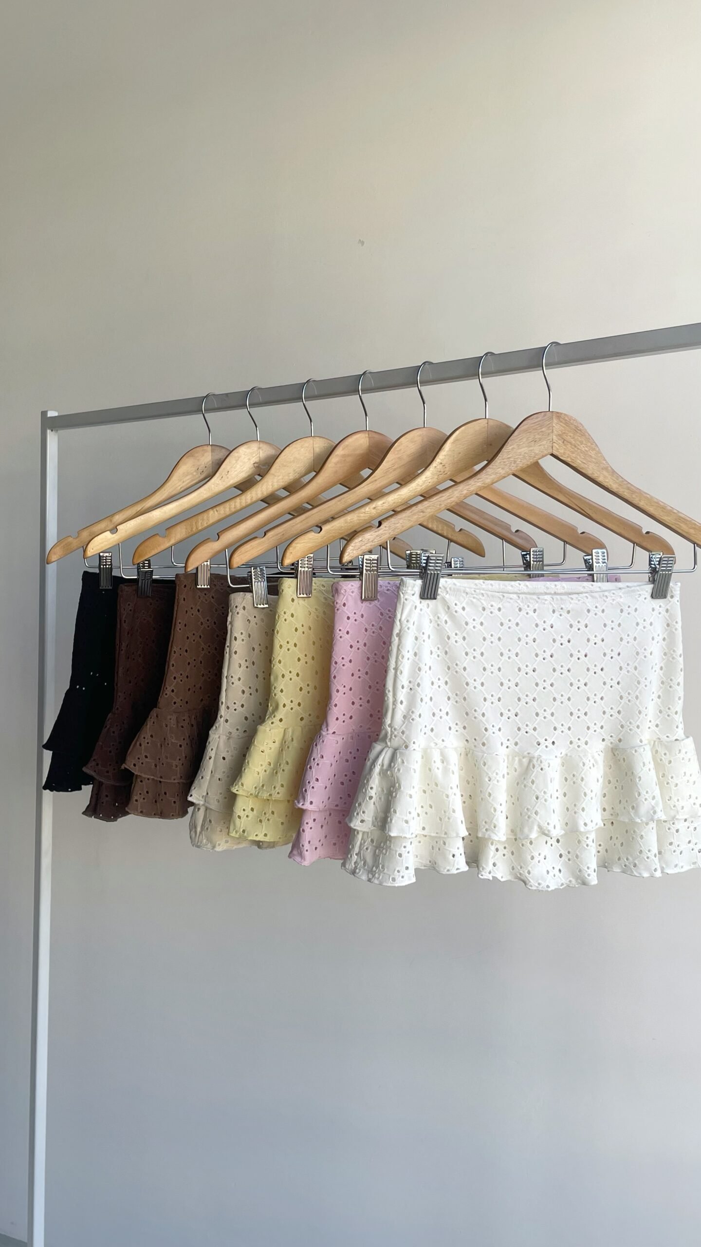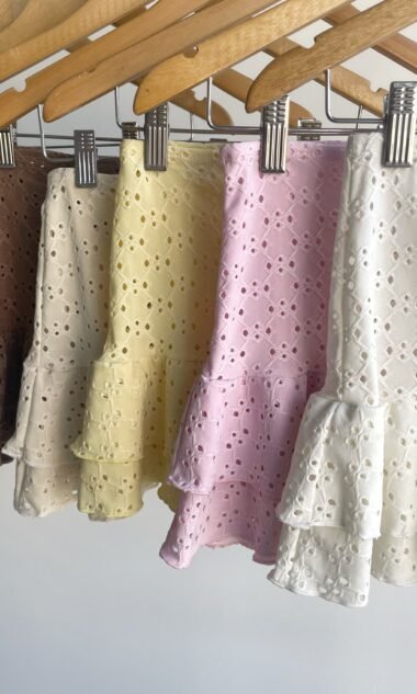 Pollera mini de volados con elastico en cintura de broderie (tela con buena elasticidad)