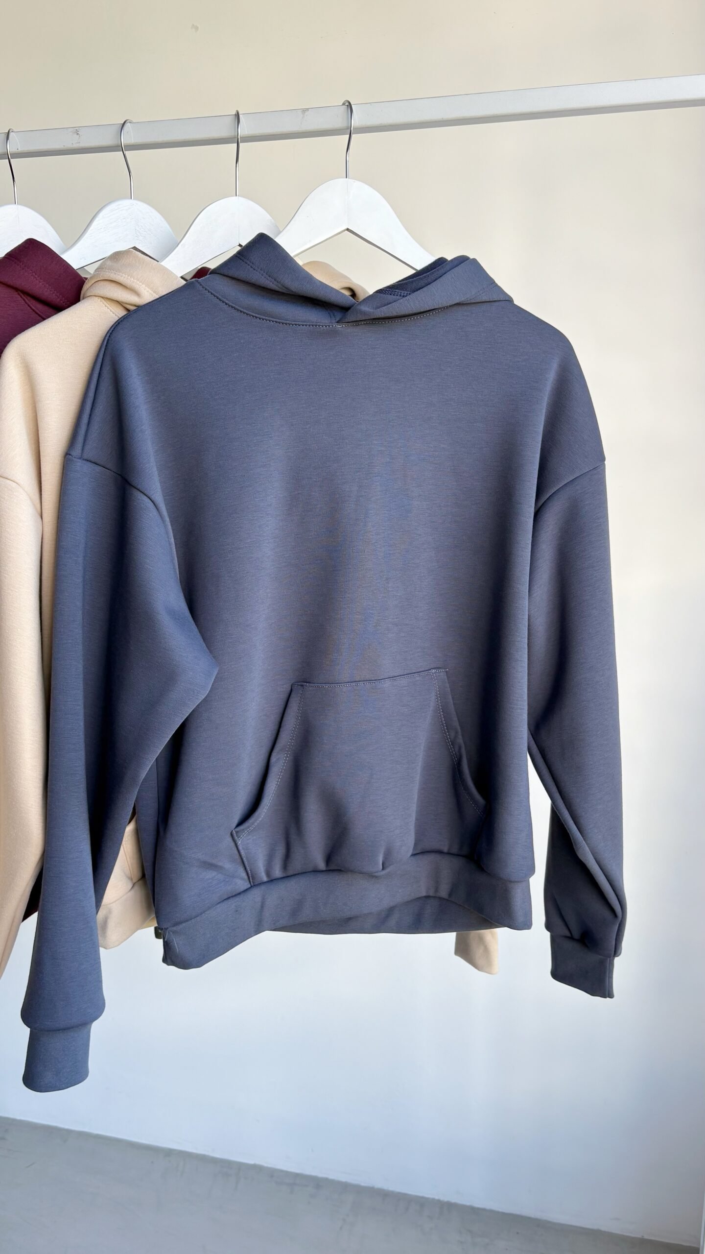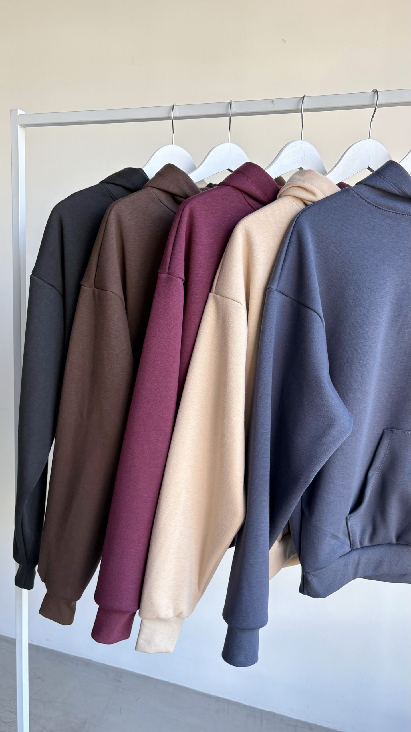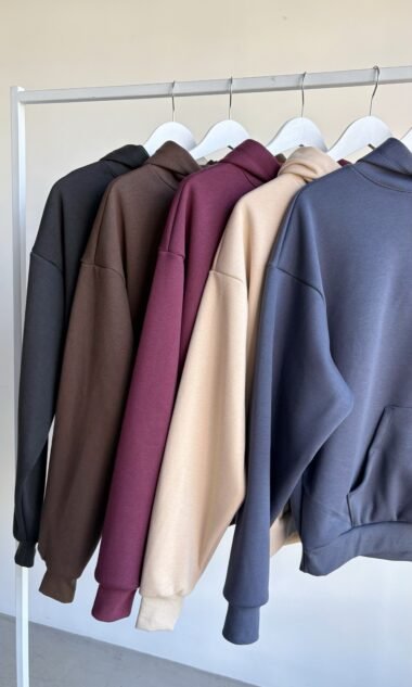 Buzo frizado con puños de complemento rib, con bolsillo canguro.
