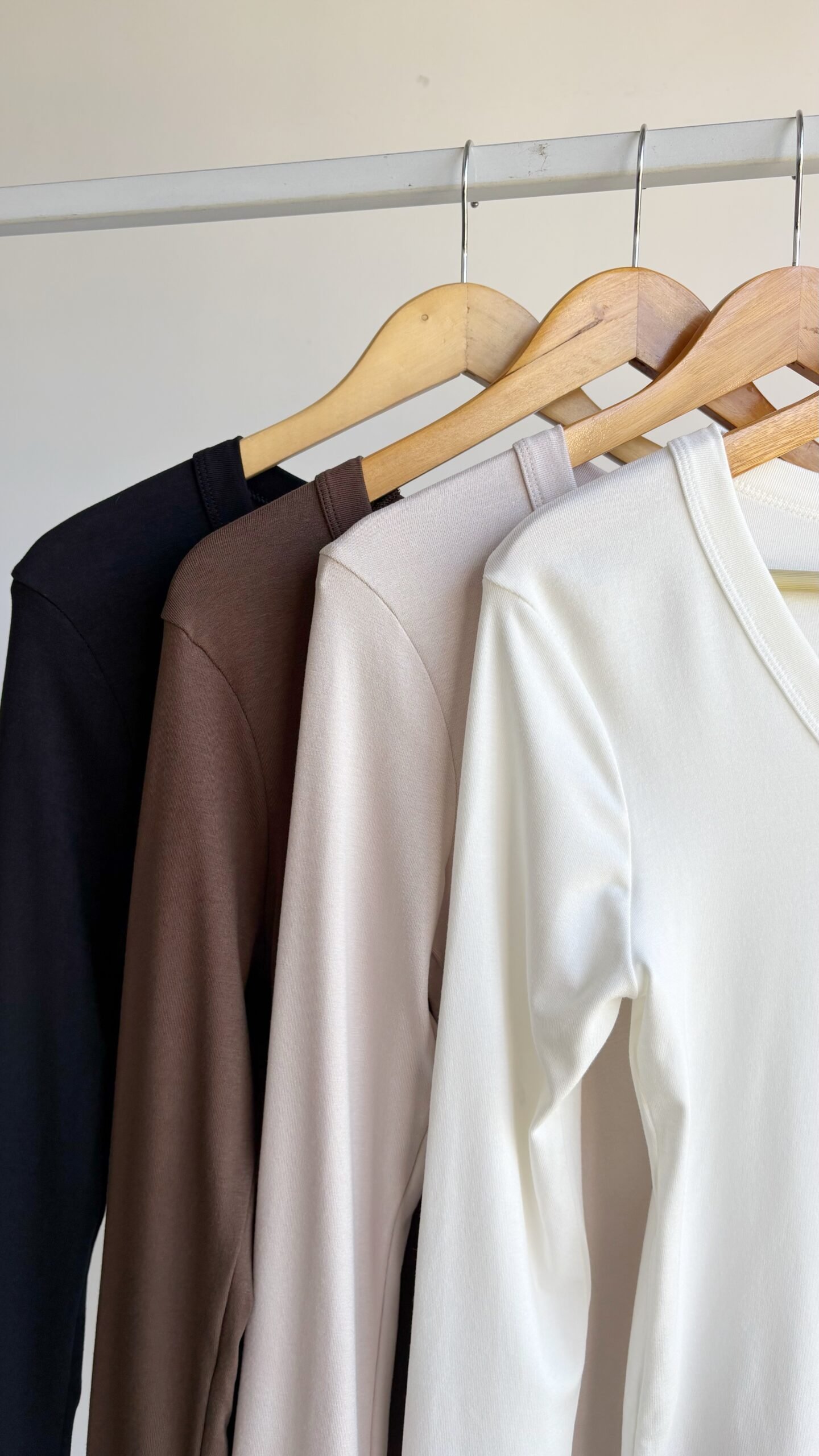 Remera básica manga larga de tela hermes (viscosa 1×1), cuello V. (Tiene muy buen rebote)