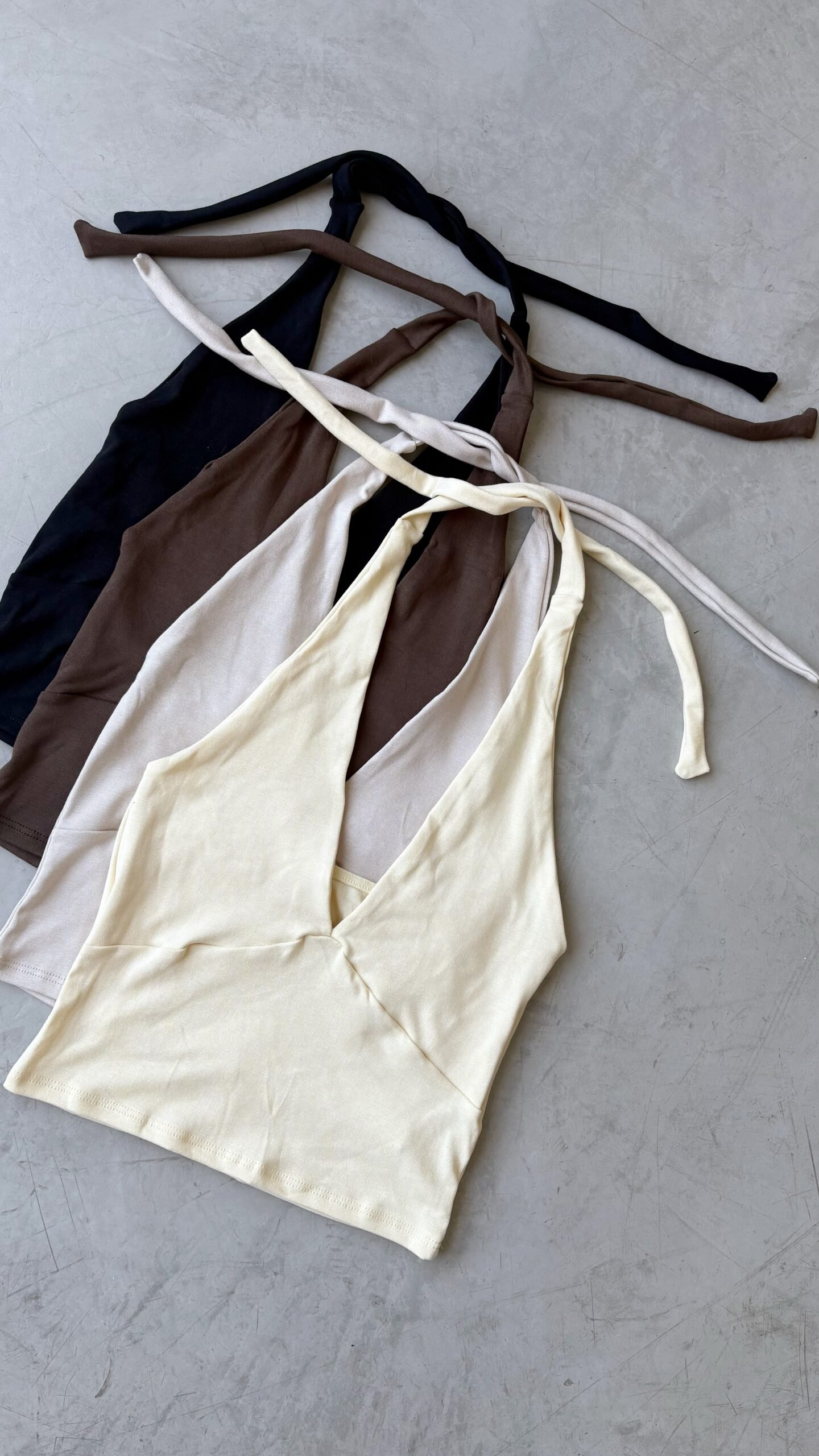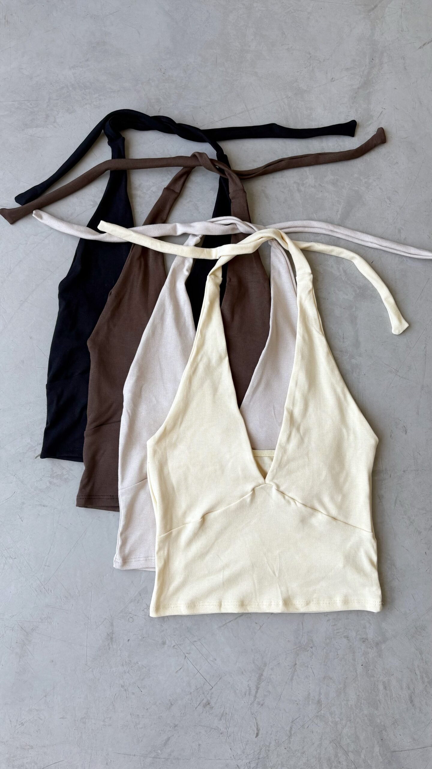 Top halter con tiras, de tela viscosa hermes. Talle único M.