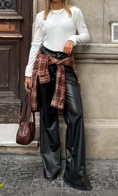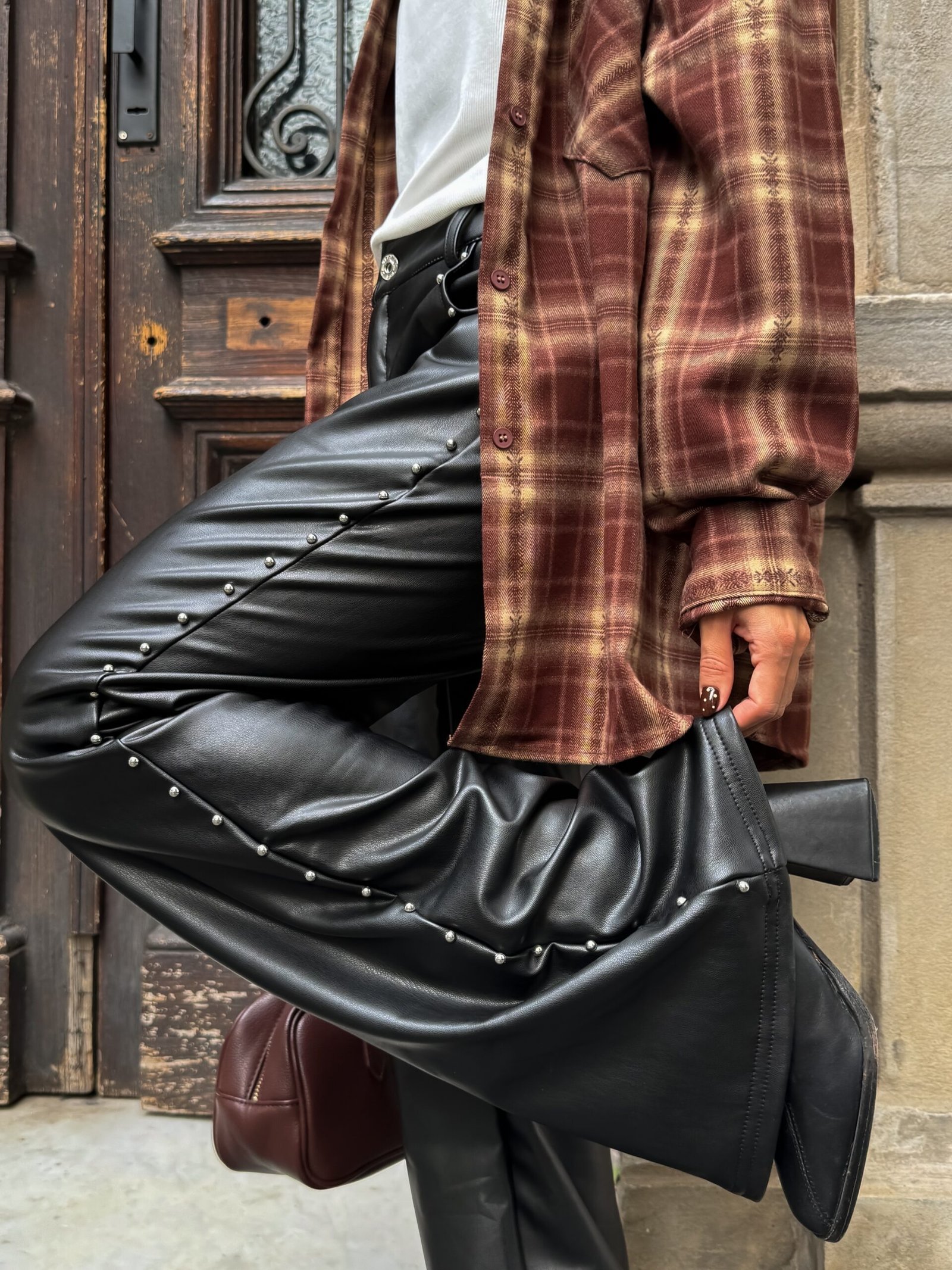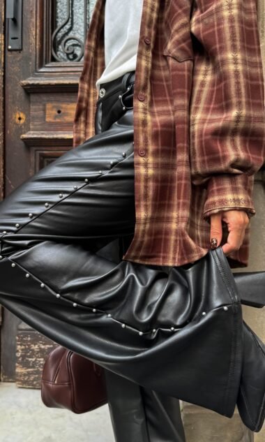 Pantalon engomado con tachas laterales, corte semi-oxford.