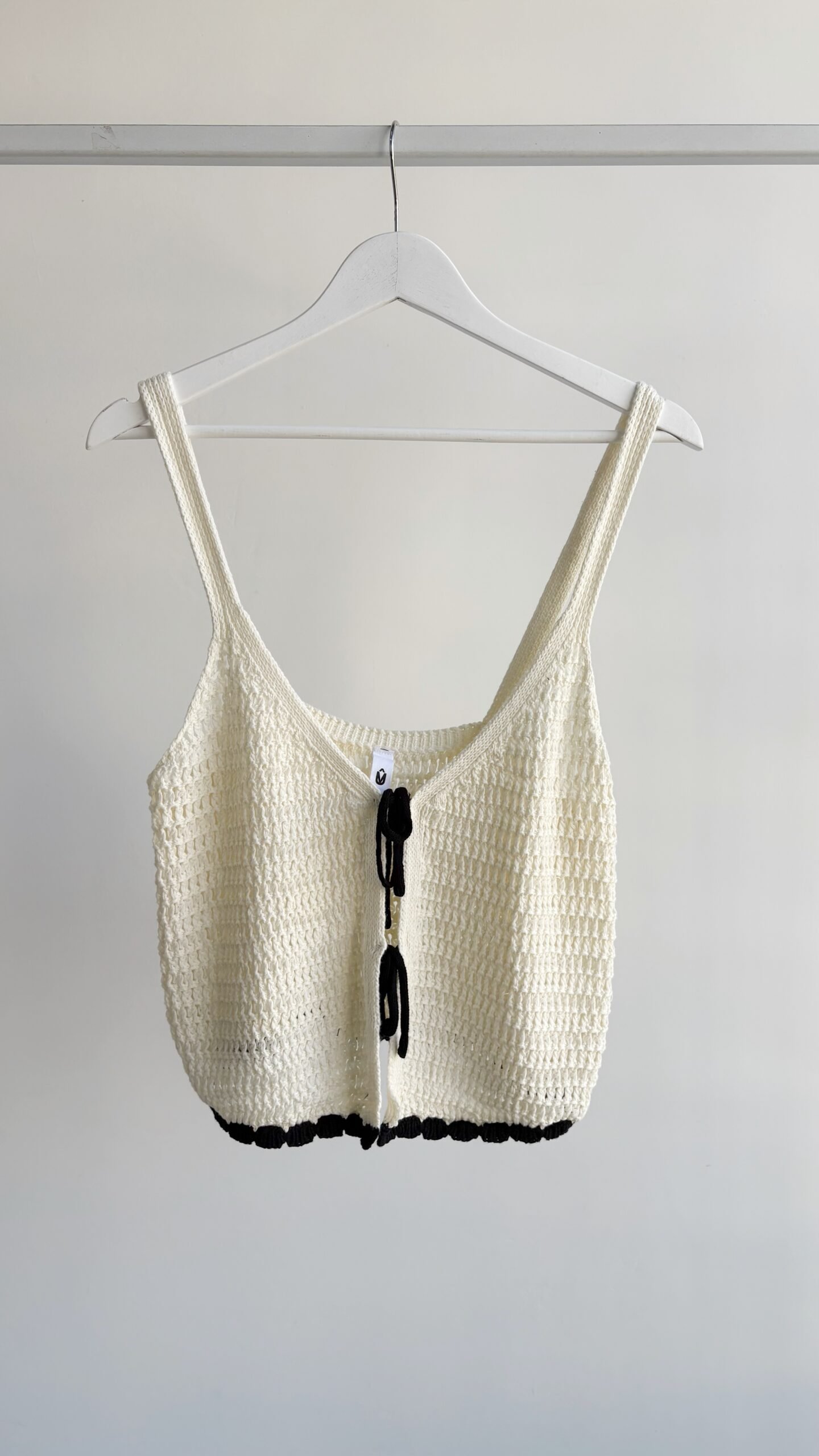 Top tejido con tiras para atar, detalle de vivos negro. Talle único, color único.