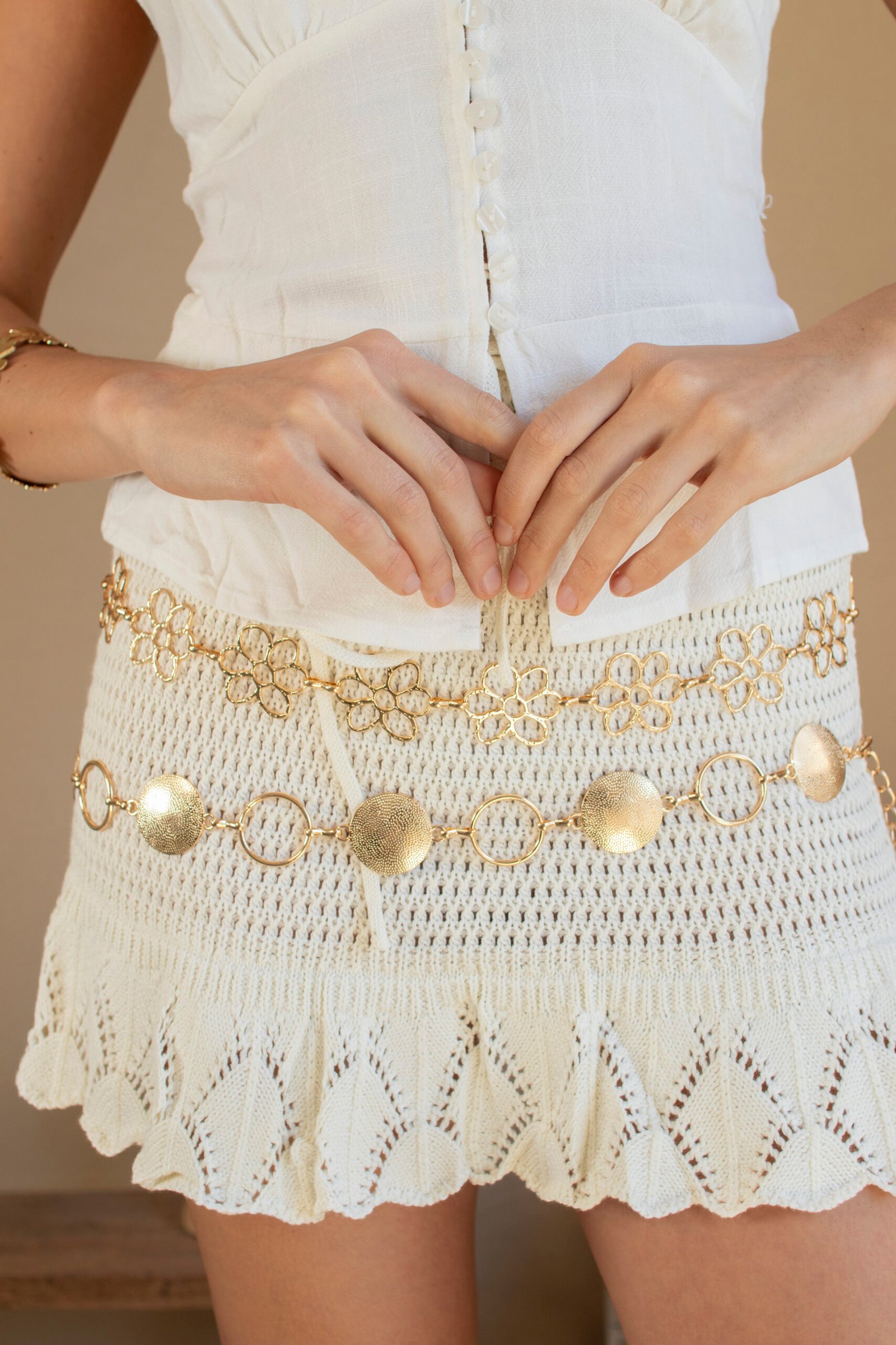 Pollera tejida con voladitos. Talle único.