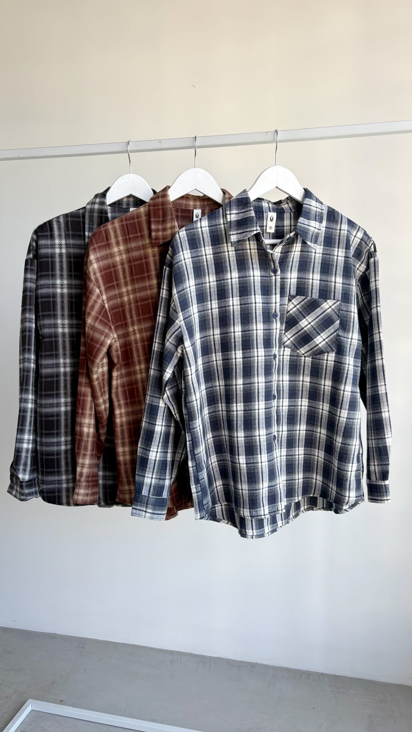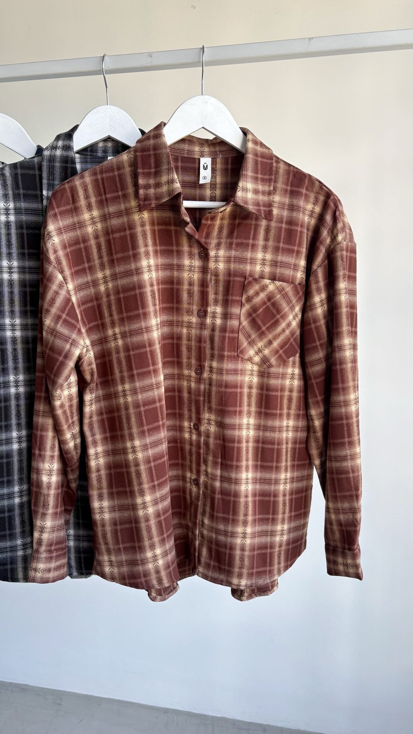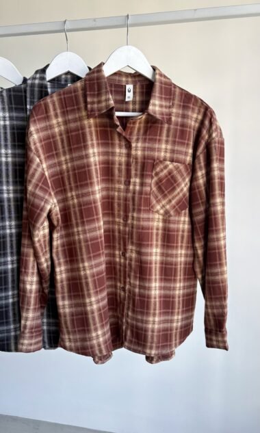 Camisaco oversize cuadrillé con botones.