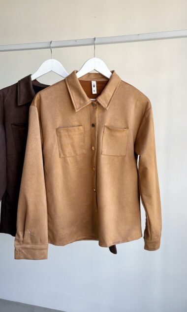 Camisa de gamuza con botones y bolsillos.