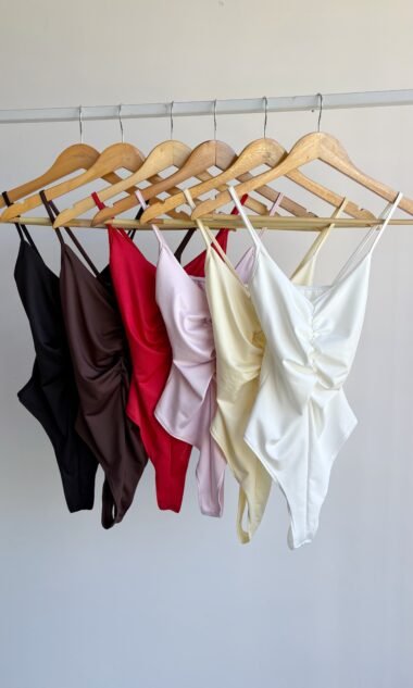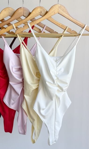 Body bretel fino con frunce en el medio, de microfibra.