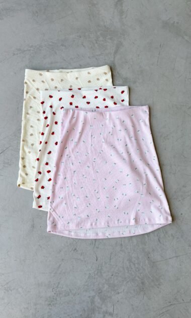 Pollera mini con elastico de morley estampado.