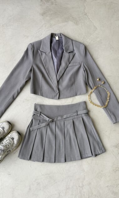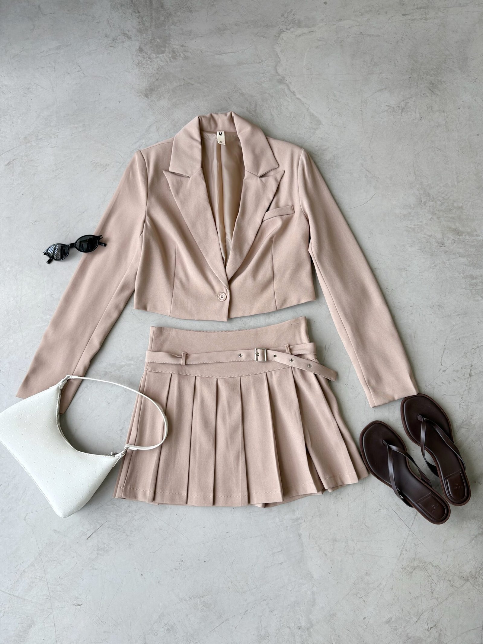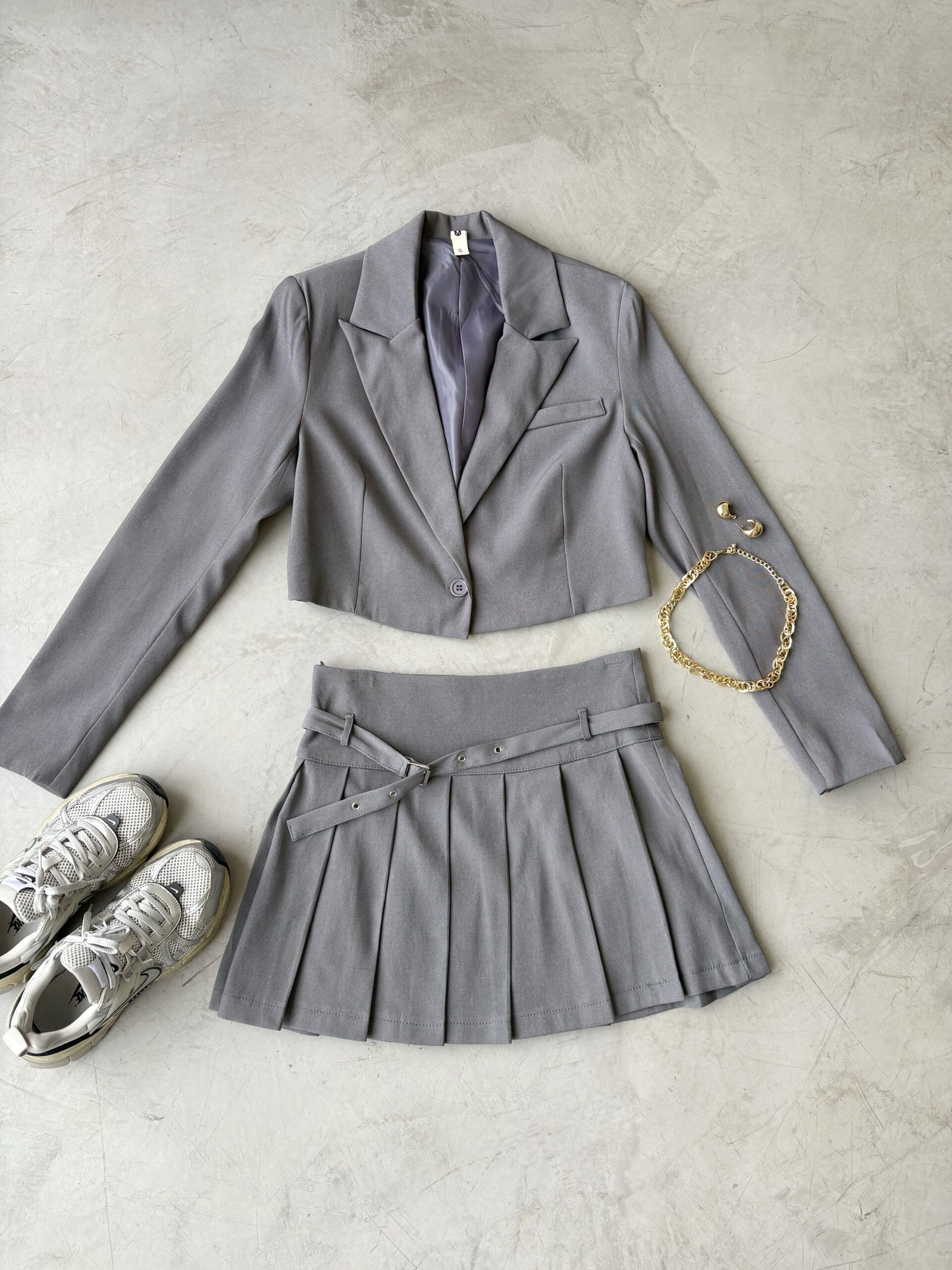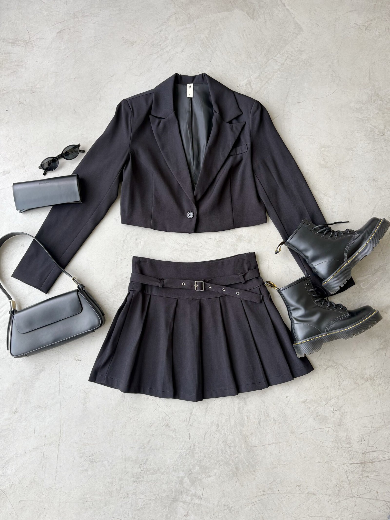 (SS3) Set CITY – Blazer Crop & Pollera Tableada