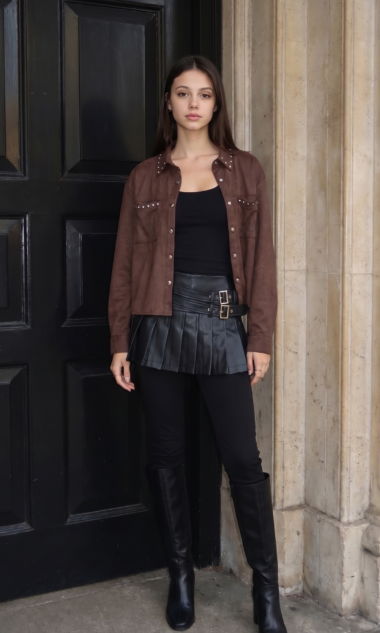 Camisa de gamuza con detalle de tachas en los bolsillos.